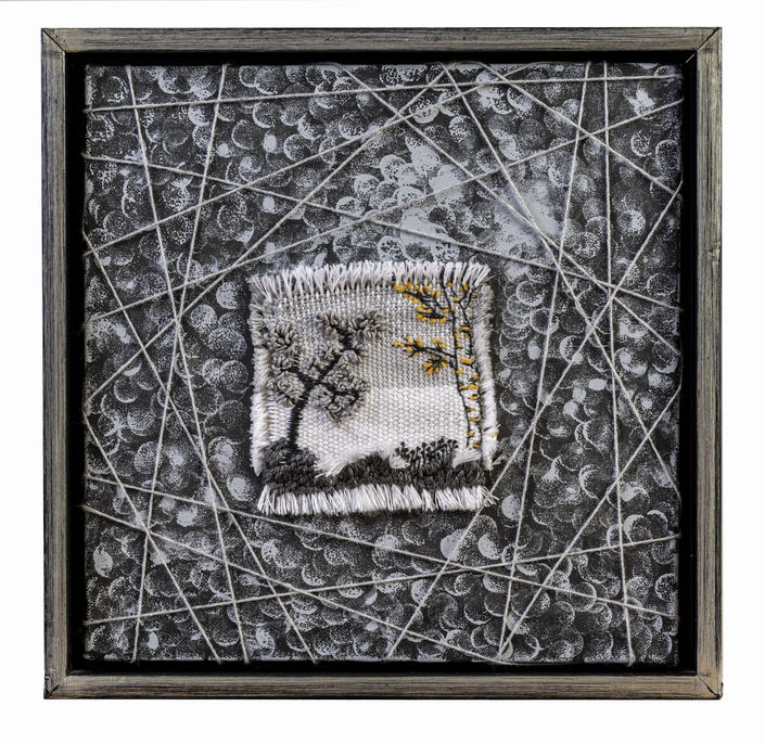 Layers of material, history, and meaning come together in Tales of Texture, a series that explores the tactile and sculptural possibilities of painting. Fabric, thread, wool, cord, and found objects such as driftwood emerge from the surface, creating a multidimensional experience that goes beyond the visual. Each piece tells a story through touch - the woven softness of fibers, the roughness of natural elements, the delicate yet deliberate stitching that binds fragments together. The materials themselves hold memories, inviting the viewer to engage not just with color and form, but with the physicality of the artwork. Tales of Texture blurs the boundary between painting and object, offering a deeper, more immersive encounter with art.